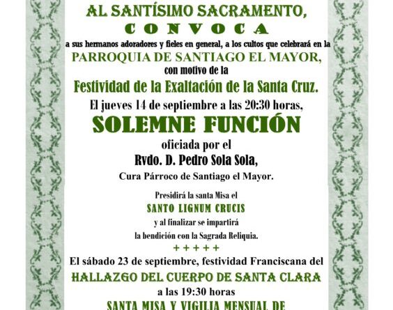Leer másLa Adoración Nocturna Española al Santísimo Sacramento celebra el próximo jueves 14 de Septiembre de 2023 a las 20:30 h.