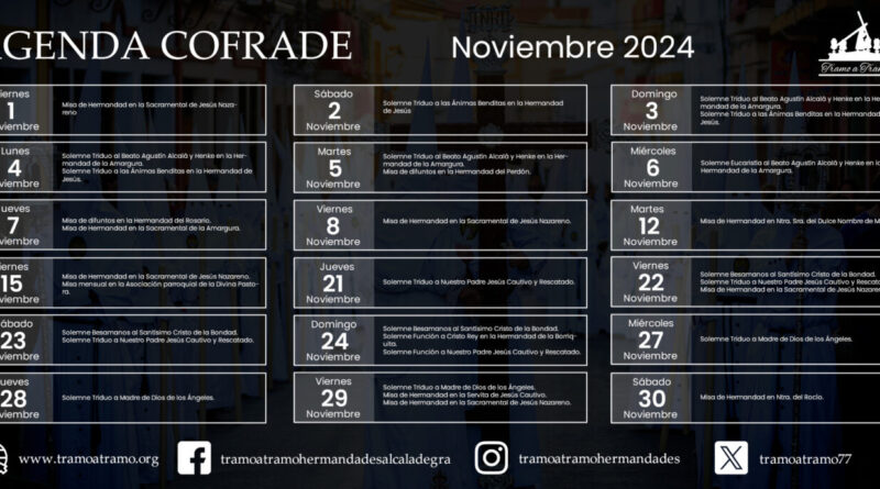 Agenda Cofrade mes de Noviembre y Diciembre 2024