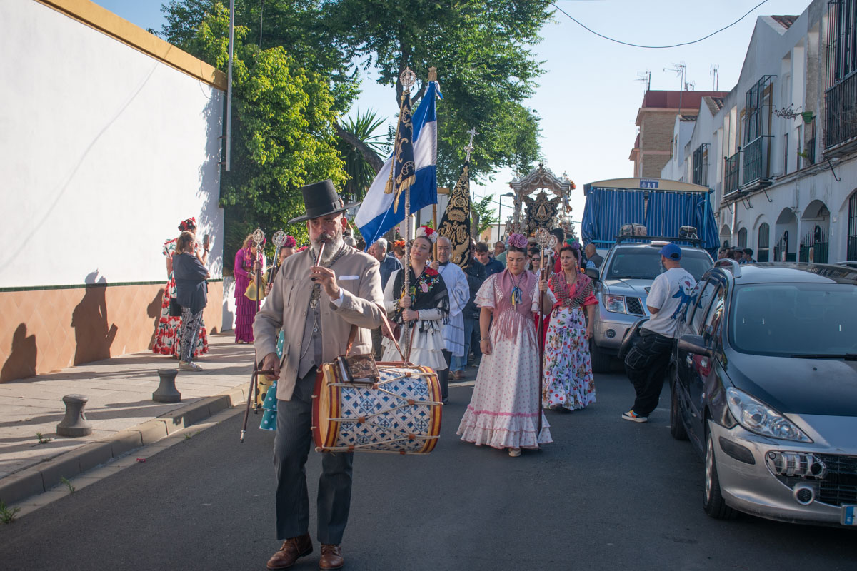 El tamborilero de la Hermandad del Rocío de Alcalá, natural de La Línea de la Concepción, que acompaña todos los años a la hermandad y hace el camino hasta la aldea almonteña desde la parroquia de San Agustín, D. Gustavo Pedrero Pérez, muy conocido por algunos medios de comunicación locales en sus entrevistas, ofreció un pregón rociero, coincidiendo con el inicio de los cultos de la Hermandad del Rocío de Alcalá, celebrándose en el Teatro Gutiérrez de Alba el pasado domingo 4 de mayo a las 12:00 h. Un pregón que acercó a muchas personas hasta el Teatro Gutierrez de Alba y en el que hubo muchos comentarios en las redes sociales, con felicitaciones hacia su persona. El tamborilero, confirmó horas después de realizar el pregón rociero de la hermandad, que estuvo envuelto en una nube… móvil saturado de llamadas, mensajes, felicitaciones… Solo puedo agradecer a los que estuvieron arropándome ayer en este día tan señalado para mí… Nos confirma en una entrevista que sólo participa con la Hdad. de Alcalá; en el resto del año sí colabora con distintas hermandades que solicitan sus servicios. En cuanto a lo que destacaría de la hermandad, él nos comenta en la pasada entrevista esto: Alcalá es una Hdad. pequeña, familiar, pero ya con muchos años de peregrinar y de saber estar… Van muy unidos y es conocida por todos… “Ahí están los panes en la carreta, son Alcalá, la de los panaderos”, se escucha decir cuando nos cruzamos con otras hermandades… Además, hay juventud con ganas que comienza a asumir responsabilidades, y eso es muy importante para el futuro de la Hdad. Los inicios como tamborilero comenzaron siendo un chiquillo en su pueblo, en La Línea de la Concepción, autodidacta, pues no había tradición tamborilera por la zona… Y poco a poco los sonidos fueron encajando, adquirí los conocimientos para realizar los toques imprescindibles para un tamborilero y empecé como tamborilero de La Línea; luego pasé a Los Palacios, Málaga, La Línea otra vez, Mairena del Aljarafe y Alcalá, con la que estoy actualmente. Destacar que son 19 años aproximadamente ya, cuando Paco Núñez, el entonces Hermano Mayor, quien contactó conmigo, nos reunimos en una cafetería en invierno y sellamos el acuerdo con un apretón de manos. El camino del Rocío hacia la aldea, nos argumenta en la pasada entrevista, que lo vive intensamente… como tamborilero y peregrino, pues soy de los que le gusta hacerlo andando al lado del Simpecao; creo que es el lugar donde se viven más momentos emotivos… esos cantes con los peregrinos, las conversaciones con el carretero, conocer los nombres de los bueyes, compartir momentos con el Hermano Mayor y el Alcalde de Carretas, cruzarse con otras hermandades… hace que el camino adquiera otra perspectiva… en definitiva, vivirlo en hermandad. ¿¿El día de la Misa de Romeros y la salida en peregrinación?? Siempre la noche anterior son momentos de nervios, de revisar el equipaje, por si hace frío, por si llueve, que si llevo las gaitas de repuesto y los parches de tambor por si se rompe en el camino, etc., que todo esté ok… Y bueno, desde las 6 de la mañana, en pie… Desayuno rápido, que la mañana es muy larga, montar todo el equipaje en el coche y comenzar el ritual de vestirse, que no se olviden las medallas de Alcalá y de La Línea, que siempre van conmigo…