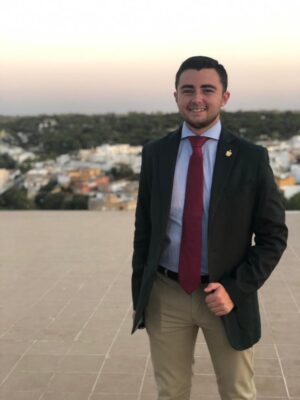 Cristiano comprometido, participa activamente en la Parroquia de San Sebastián como Coordinador de la pastoral juvenil y catequista del grupo jóven. Además es hermano de la querida Hermandad del Águila, Hermandad del Dulce Nombre de María, de la cuál forma parte de su Junta de Gobierno siendo el Diputado de Cultos y formación y hermano de la hermandad de San Mateo, entre otras.