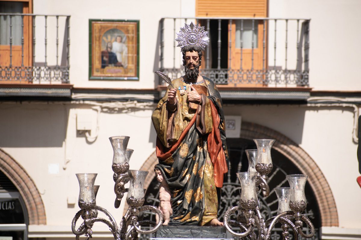 El equipo de Priostia de San Mateo Evangelista ha procedido al cambio de estructura del altar de su titular, colocando sobre fondo color burdeos un nuevo y elegante Dolsel.
