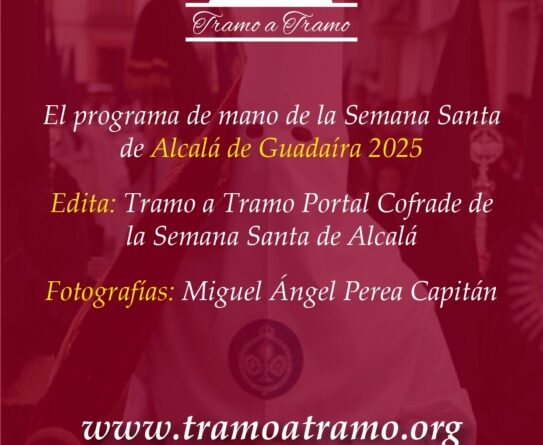 Para la próxima Semana Santa 2025, la web cofrade de Tramo a Tramo tendrá a disposición de todos los hermanos, devotos y cofrades de nuestra ciudad el primer programa digital, solo descargable en pdf desde nuestra web. Solo hemos empezado a preparar las primeras páginas del programa de mano y seguiremos en los próximos días hasta que se termine y ya se pueda publicar. No será imprimido y repartido por Alcalá, pues queremos empezar primero, solo para que se lo puedan descargar ustedes desde la web. El programa de mano digital estará dedicado a las hermandades que hacen estación de penitencia en nuestra Semana Santa.
