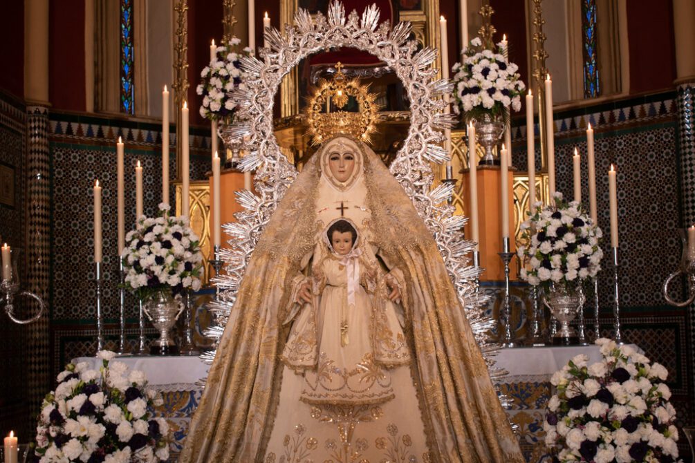 Santa Maria del Aguila Coronada da comienzo a los Solemnes Cultos que celebra en el mes de Agosto y el próximo 5, se realizara el Acto de Entrega del llamador a la cuadrilla de costaleros y capataces de Maria Auxiliadora Coronada tras la misa de las 21:30 en el Santuario de Santa Maria del Aguila de cara a la Salida Procesional de la Patrona de Alcalá de Guadaira que saldra sobre las 21:00 h. en la tarde del 15 de Agosto.