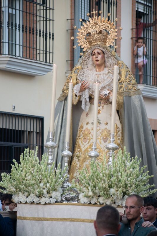Una vez termine la Misa de las 09:30 de la mañana del domingo 30 en la puerta del Convento, dará comienzo la procesión triunfal de regreso de la Santísima Virgen hasta la Parroquia de la Inmaculada, siguiendo el siguiente recorrido: Nuestra Señora del Águila, Santa Clara, Alcalá y Orti, Plaza de Cervantes, La Plazuela, Gutiérrez de Alba, Cristo del Amor, Rosario, Nuestra Señora del Dulce Nombre, Cantillana, Cristóbal Colón, Marchena, Lebrija, Los Palacios, Sanlúcar la Mayor, Ramón J. Sender y Gracia Sáenz de Tejada.