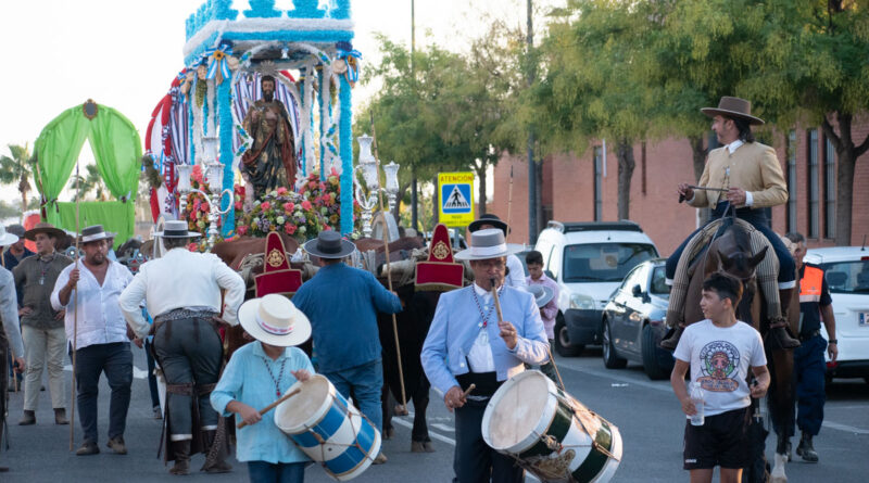Antes de recogernos, por la zona de la Avenida de la Constitución hasta la parroquia, esos cantos, bailes y «vivas» frente a nuestro patrón y la cantidad de gente que lo acompañaba. Fueron momentos únicos y emotivos. Como si quisiéramos alargar el momento, por muy cansados que estuviéramos seguíamos disfrutando de aquellos minutos antes de entrar. Cuando ya todo finalizó tenia los vellos de puntas.