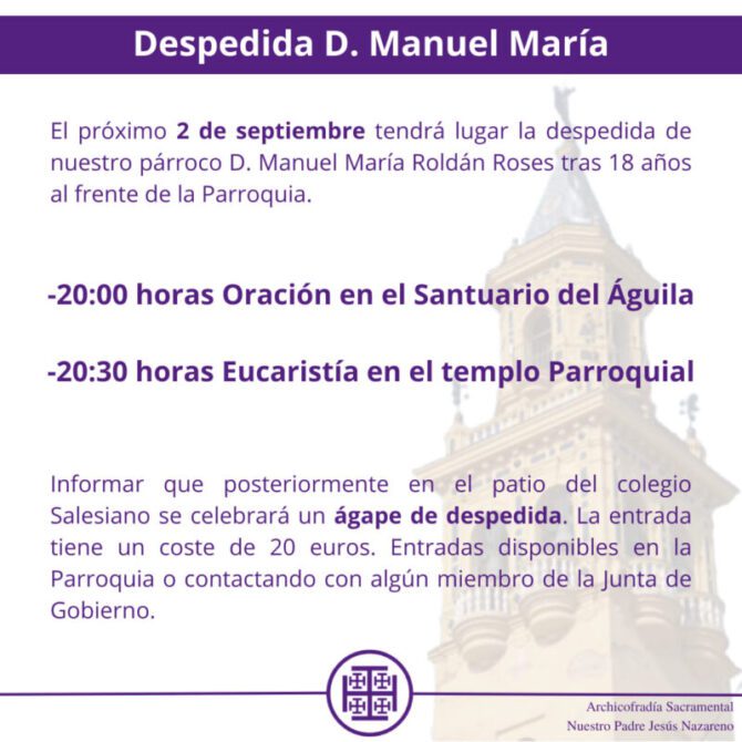 El próximo 2 de Septiembre, tendrá lugar la despedida de D. Manuel María como párroco de Santiago tras 18 años de servicio pastoral.