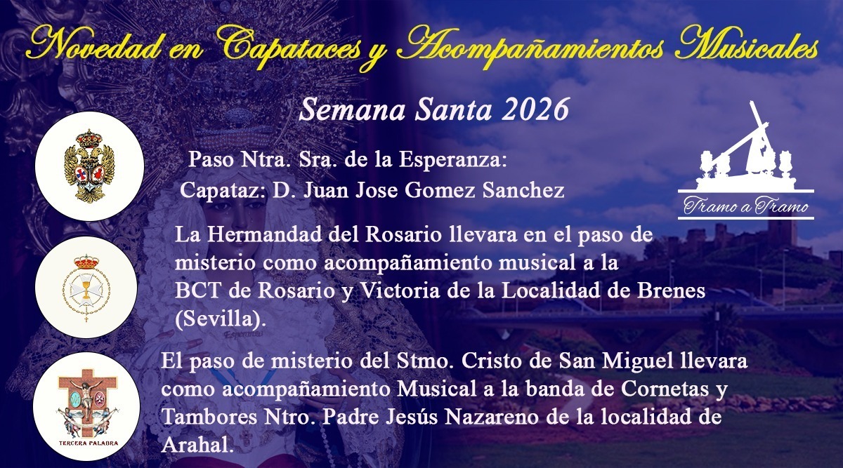 El paso de Ntra. Sra. de la Esperanza de la Hermandad Servita del Cautivo realizara la Iguala de Costaleros el proximo 16 de enero de 2026 a las 21:00 h. para vivir con intensidad otro miercoles santo. El capataz es D. Juan Jose Gomez Sanchez. A continuación os adjuntamos el Cartel con los cambios de capataces y Acompañamientos Musicales.