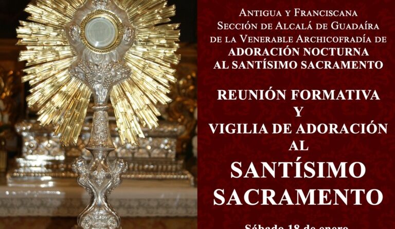 La Adoración Nocturna al Santísimo Sacramento celebrará el próximo 18 de enero de 18:30 h. a 22:00 h. Reunión formativa y vigilia de adoración en el Convento de Santa Clara.