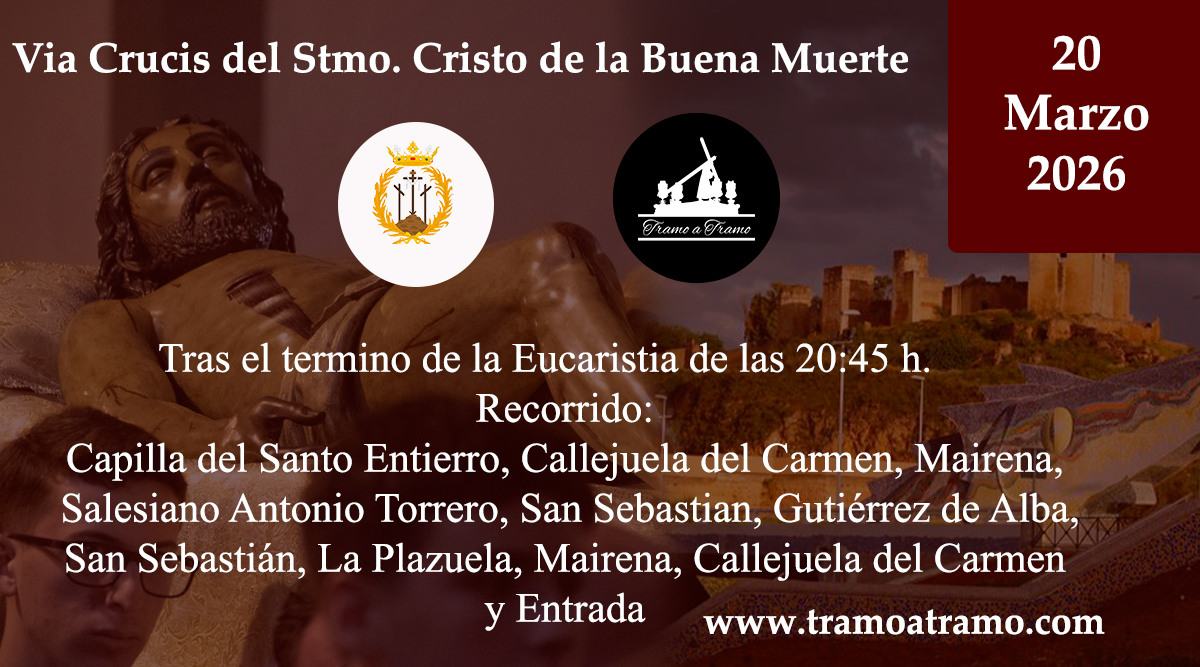 Via Crucis y traslado al paso del Santo Sepulcro por las calles de la feligresía, haciendo estación de penitencia en la parroquia de San Sebastián. Acompañamiento musical de la Coral Polifónica de Alcalá de Guadaira.