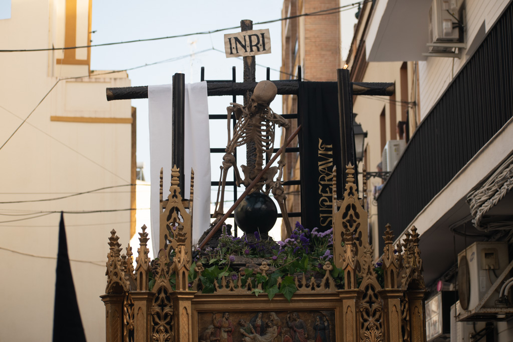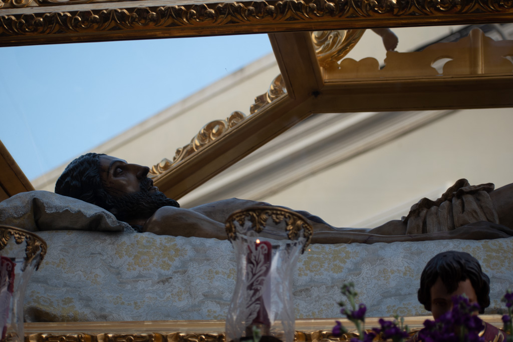 Todo pasa rápido, cuando te quieres dar cuenta, ya estás en la rampa de la Capilla, y un último esfuerzo y se posan los cuatro zancos, otra vez en casa, soy el último que sale de debajo del paso, en ésta intimidad ya roto y vacío, de haberlo dado todo, una mirada hacia arriba, un gracias por otro Viernes Santo, y una petición de salud, para vernos otro año más.
