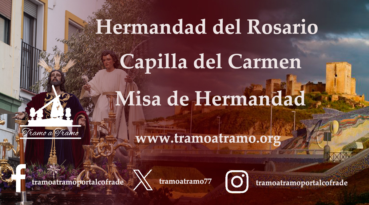El próximo sábado 7 de febrero, la Hermandad del Rosario celebrará Misa Mensual en la capilla de Ntra. Sra. del Carmen en conmemoración a Mª Santísima del Rosario. La eucaristía será a las 20:15 h., comenzando con el rezo del Santo Rosario.
