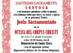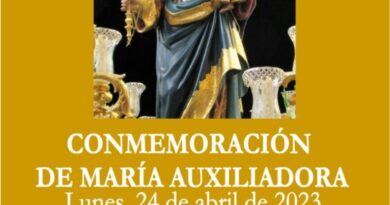 Maria Auxiliadora Coronada ha comenzado desde hoy 15 de mayo y hasta el 23 del mismo mes, con la Solemne Novena a la Santísima Virgen que dará comienzo a las 20:00 h.; previamente se rezará el Santo Rosario. El día 20, presentación de los niños nacidos en el año. Día 23, imposición de medallas a nuevos asociados. En la capilla de Ntra. Sra. del Carmen. El día 24, Solemnidad de María Auxiliadora de los Cristianos, a las 9:30 h. de la mañana. A las 11:00 h., solemne eucaristía.