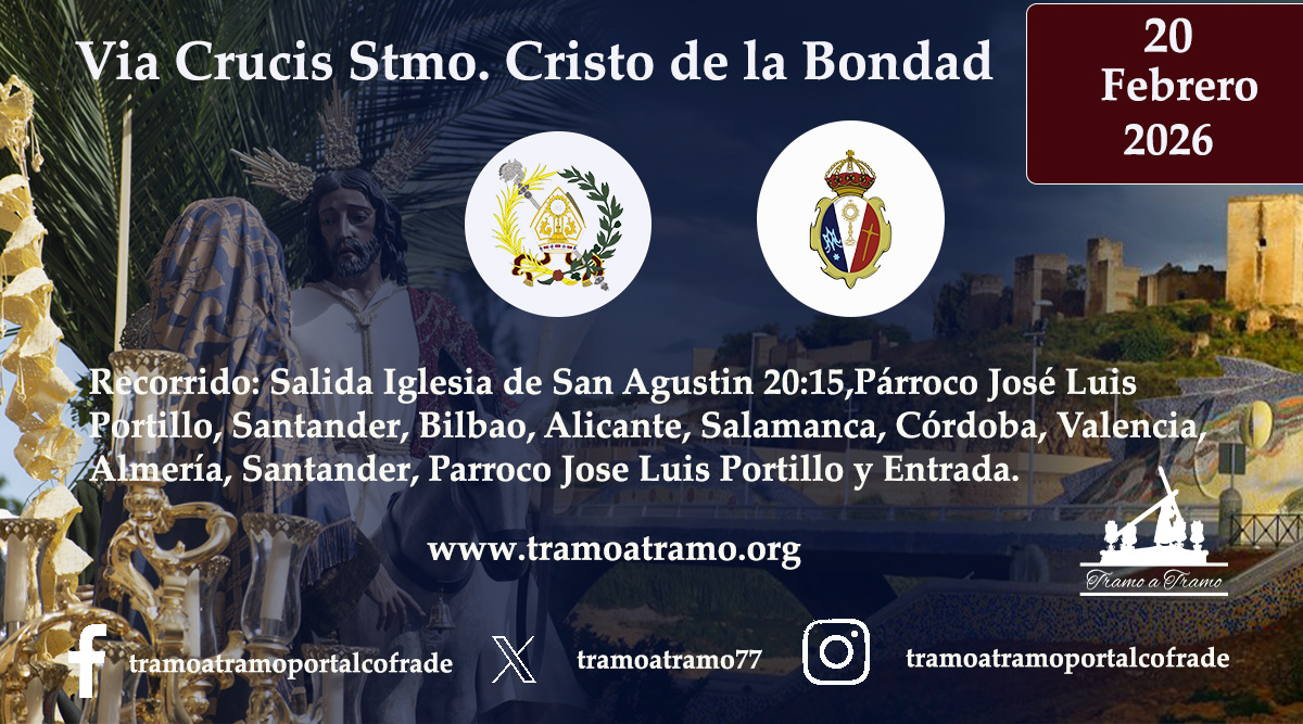 Hermandad de la BorriquitaNoticias Via Crucis Stmo. Cristo de la BondadEl próximo 20 de febrero, el Stmo. Cristo de la Bondad saldrá desde la parroquia de San Agustín en Vía Crucis por la feligresía a las 20:15 h. Comparte esta entrada: